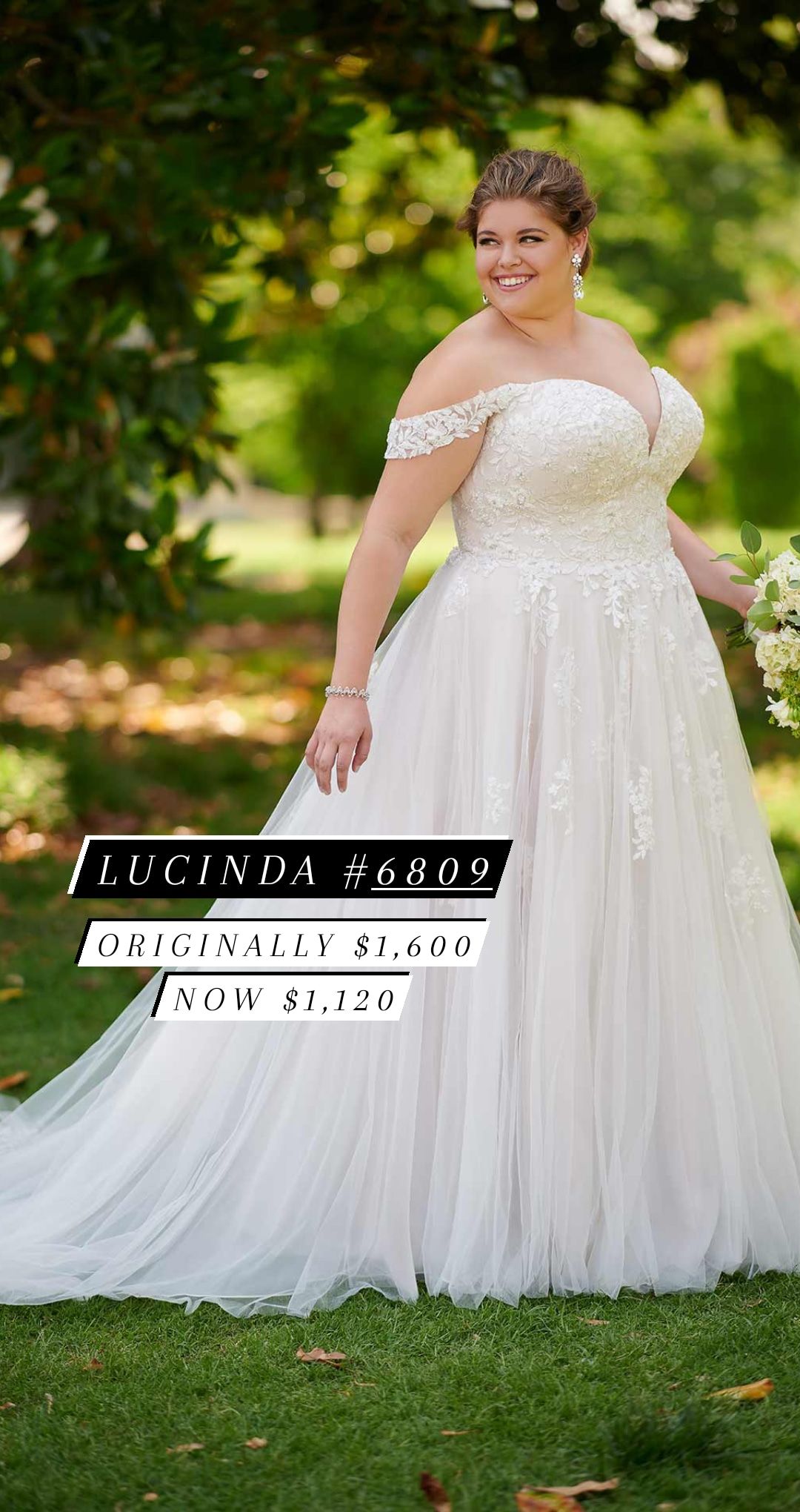 The Collection is available at 30% off retail price , and brings the gowns to between $600-1,200. Sizes range from bridal 8 to 28, but there is only one of each style available, so act quickly!